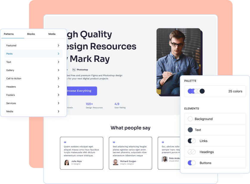 Interaktive Designwerkzeuge und viele Anpassungsoptionen, um alles und jedes anzupassen, was benötigt wird, um die voll funktionsfähige Website Ihrer Träume zu erstellen.